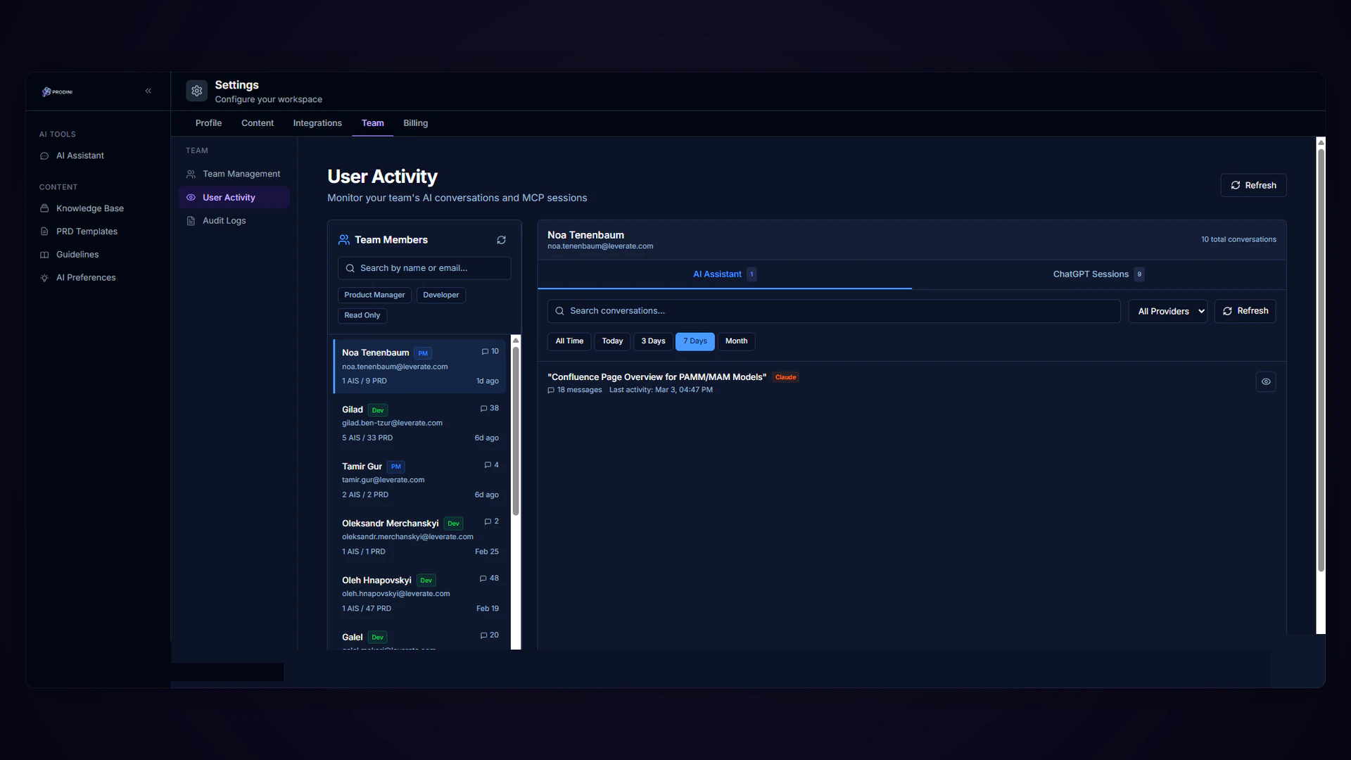 ProdiniはJira/Confluence/Figma/GitHubと連携して、RAG技術でチームのテンプレートとガイドラインを学習し、初稿から実運用可能なPRDを自動作成します。エンジニア...
