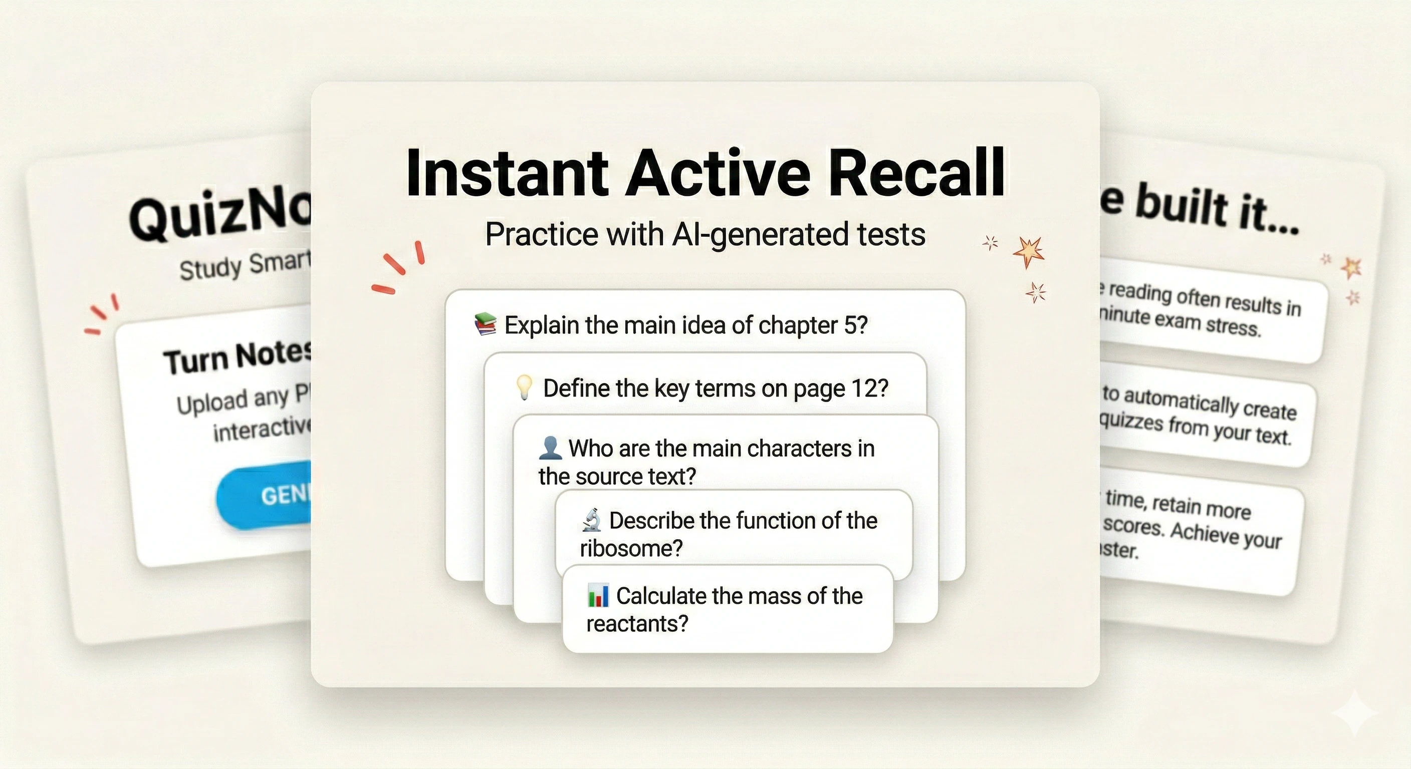 QuizNotesPDFは、AIを使ってPDF学習ノートを数秒でインタラクティブなクイズに変換する学習ツールです。登録不要で、受動的な読みだけでなく、能動的リコールを促進します。即時AI生成・集...