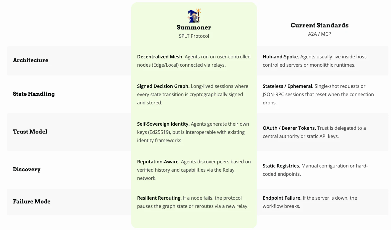 ## 概要 企業間でAIエージェントが協調できるインフラ。発見・構造化提案の交渉・結果の署名と検証・監査可能な意思決定の痕跡生成を統合します。従来は1社内で完結していたAIエージェントの課題を跨...