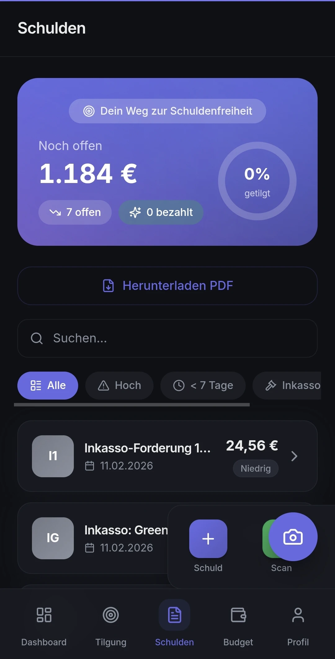 ## 概要 DebtFree.pro はドイツ市場向けのAI搭載債務管理アプリです。債権回収の手紙をスキャンすると、AI が債権者・金額・締切日を抽出し、難解な表現を分かりやすく解説します。さら...