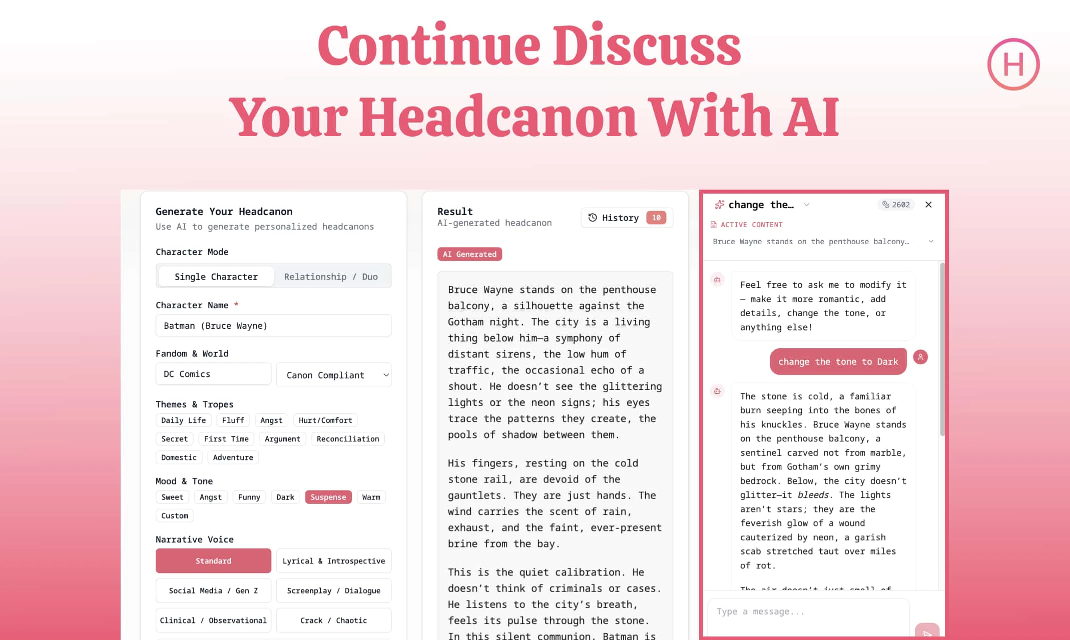 ##概要 Headcanon Generatorは、ファンダムやオリジナルキャラ向けのユニークなバックストーリーとAU設定を瞬時に生成するAIツールです。 ##特徴 - クラシックモードは登録...
