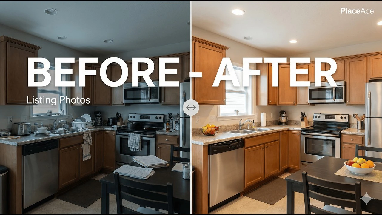 暗くて散らかったリスティング写真を、売れる写真へ。