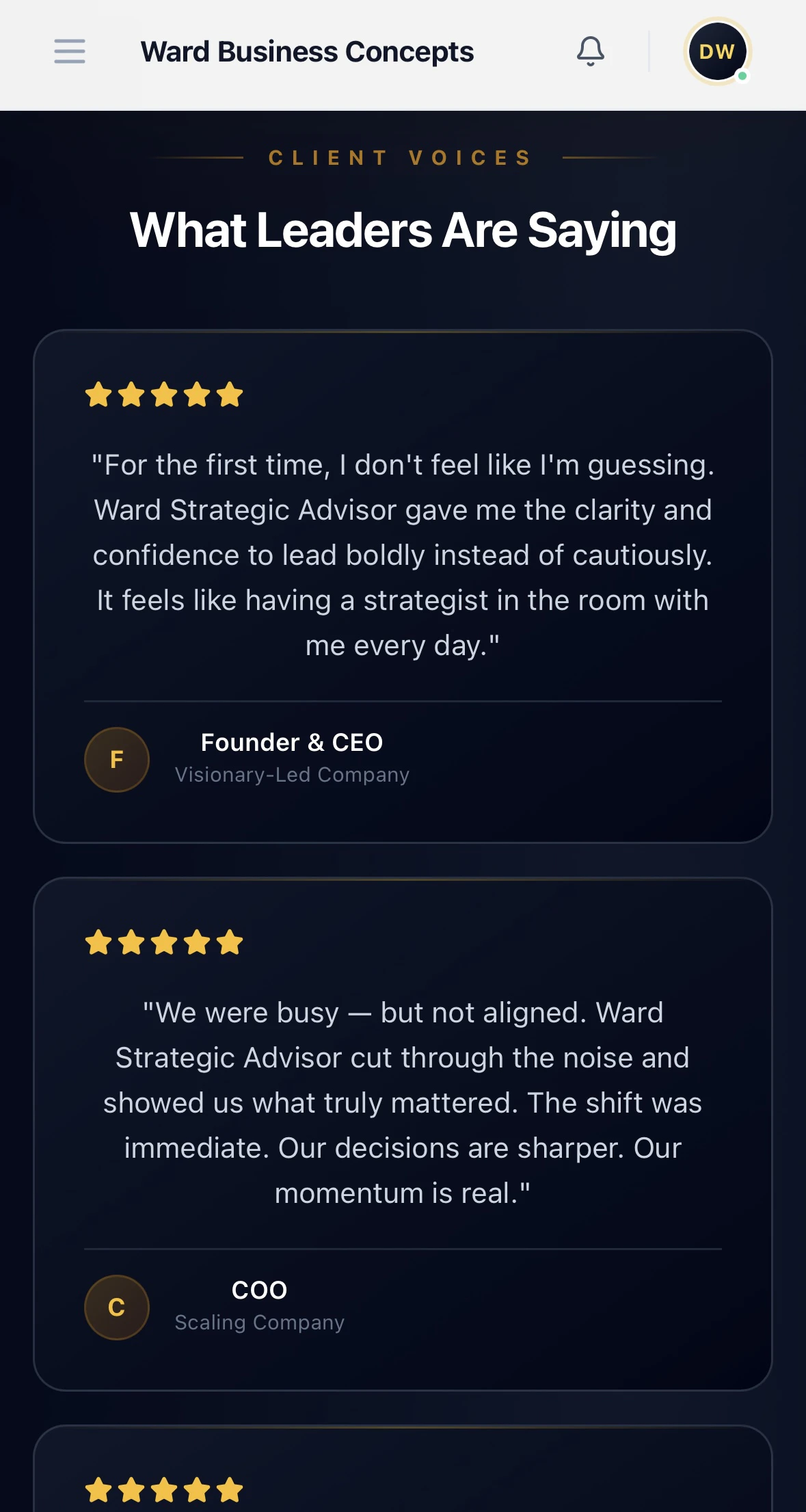## 概要 Ward Strategic Advisor は AI 搭載のエグゼクティブ向け戦略意思決定支援プラットフォーム。リアルタイムの洞察を提供し、分散データと断片化したツールによる意思決...