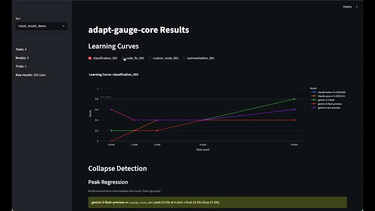 ## 概要 AdaptGaugeは、少数ショットの追加がLLMの性能を低下させるケースを検出・可視化するオープンソースツールです。8モデル・4タスクの検証から、ピーク回帰、ランキング逆転、選択崩...