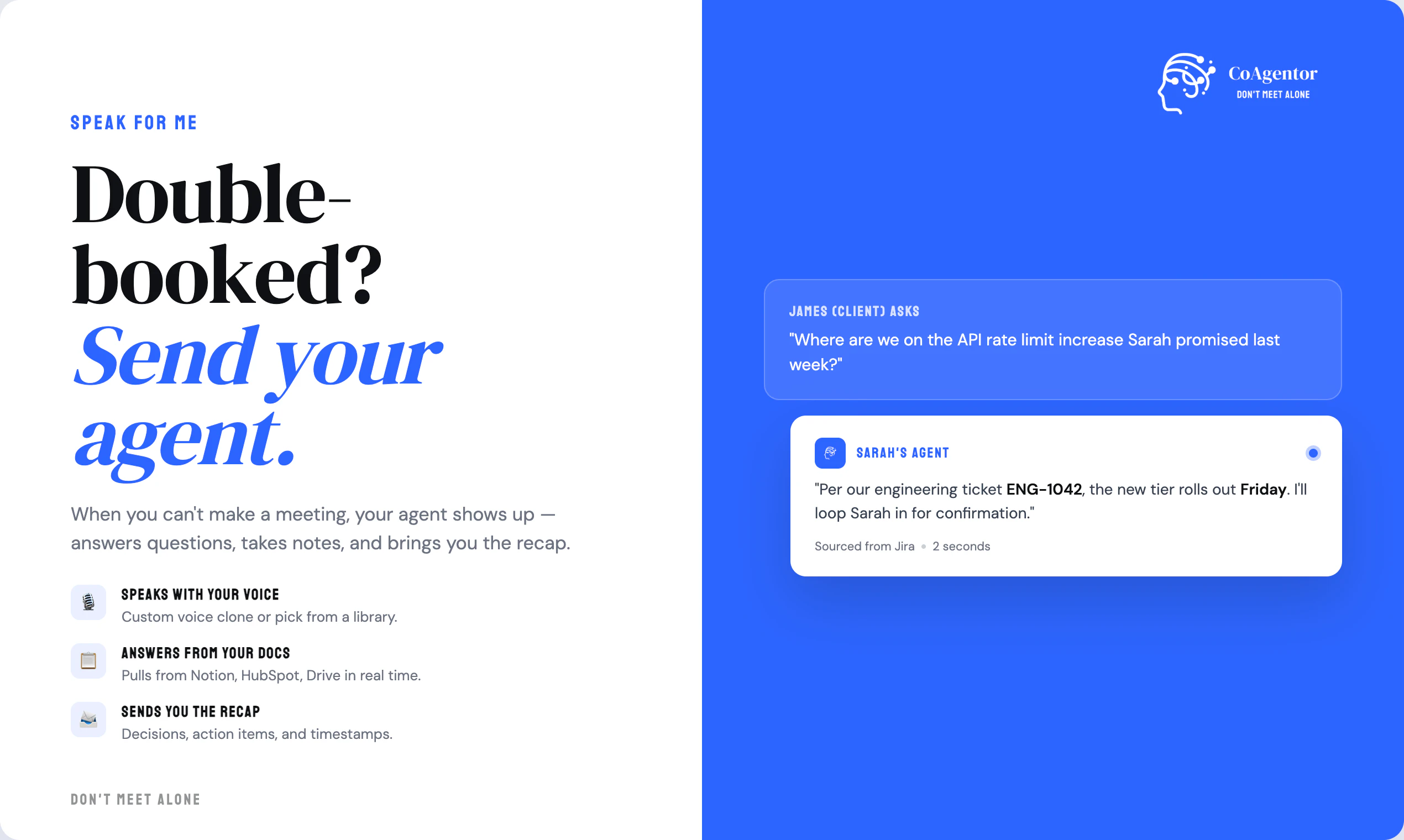 Most AI Meeting agents just take notes. CoAgentor brings AI meeting agents into your live calls, ...