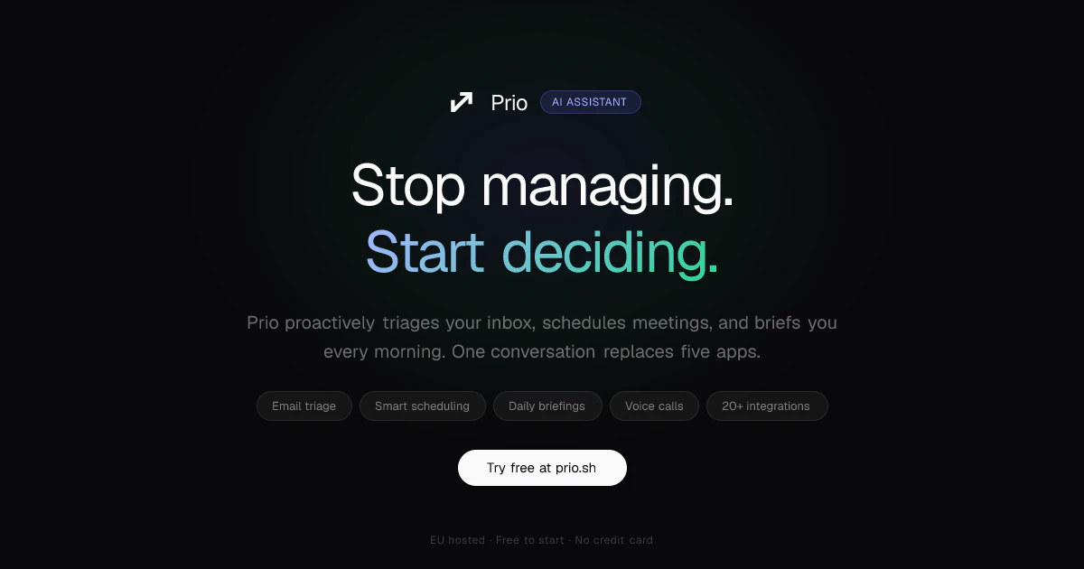 Prio is an AI chief of staff (Executive Assistant) for founders. One chat to manage your inbox, c...