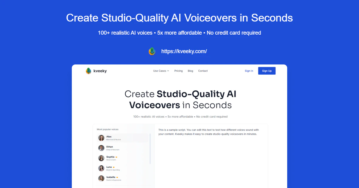 Kveeky is the leading AI voice generator. Create realistic text-to-speech voiceovers for videos, ...