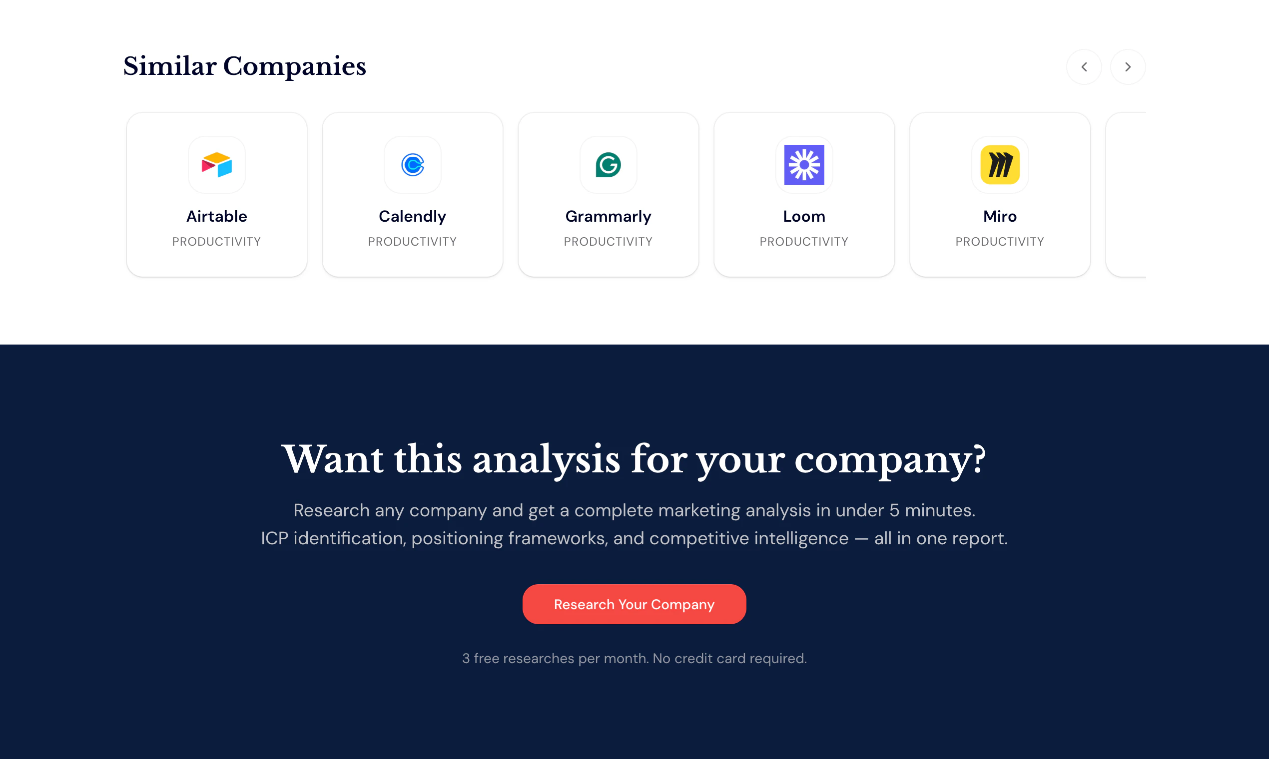 Browse structured marketing research on 120+ companies — completely free, no signup required. Eac...