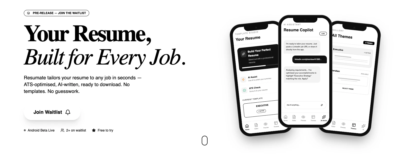 Resumate is an AI-first resume builder designed to help job seekers get more callbacks. Upload yo...
