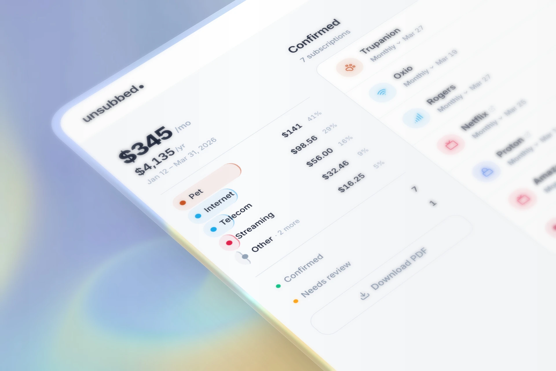 Most subscription trackers want your bank login. Unsubbed doesn't. Upload a PDF statement and get...