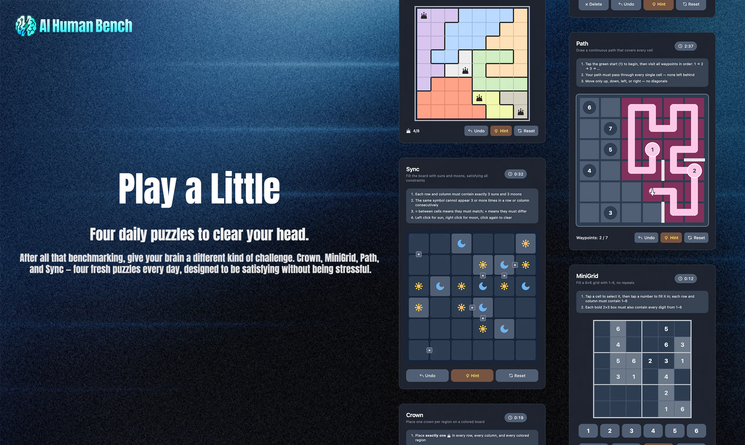 AI Human Bench is the first platform that lets you directly compete with AI on 20+ cognitive test...