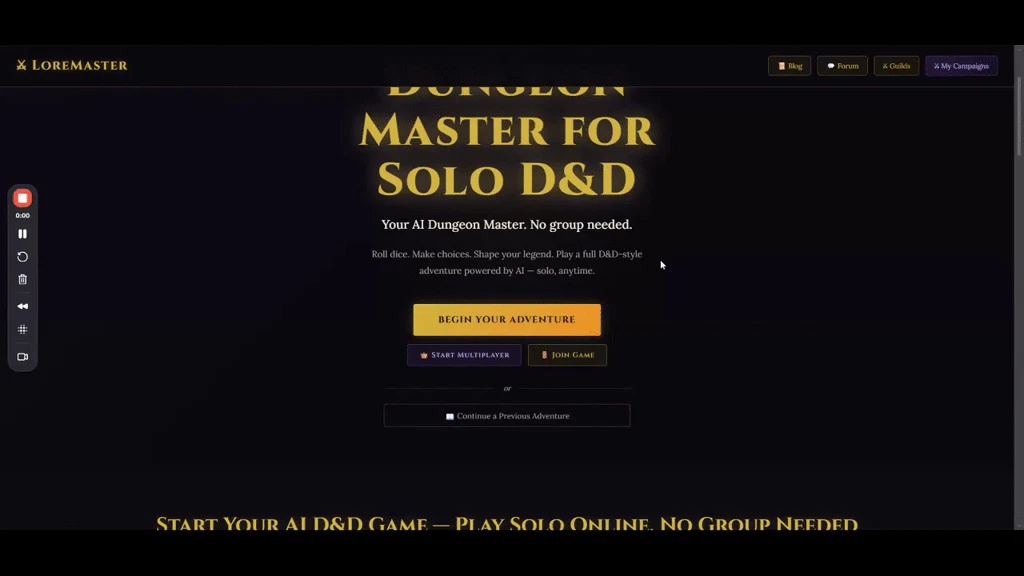 LoreMaster is an AI-powered Dungeon Master that runs full D&D campaigns in your browser. Pick you...