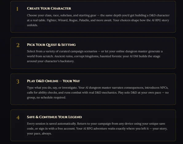 Your AI Dungeon Master. No group needed. Just adventure.
