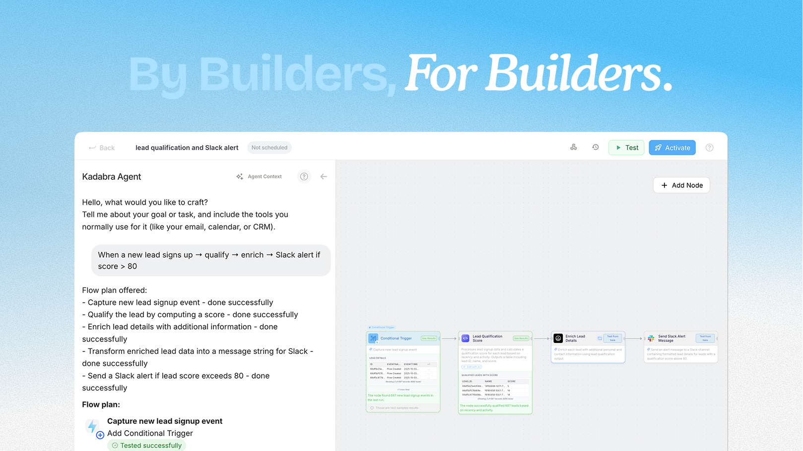 ## 概要 Kadabra は「言葉で自動化」を実現する AI エージェント。平易な説明だけで、ゴールからワークフローを設計・テスト・実行まで回す。Slack/Notion/Sheets/Gma...