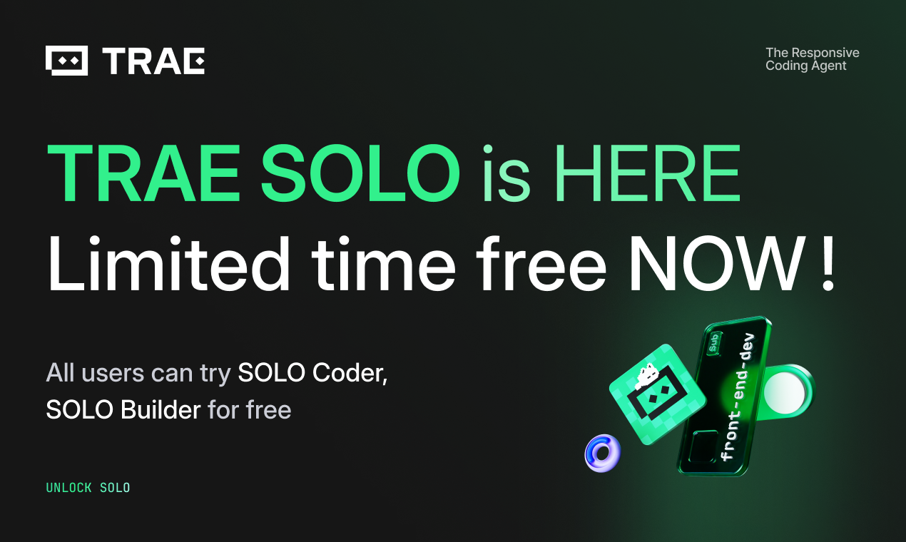 ## 概要 TRAE SOLOの大幅アップデートで、SOLO Coderが登場。SWE-Benchのコードエージェントを核に、視覚的・計画優先・マルチエージェントのワークフローを提供。反応性・透...