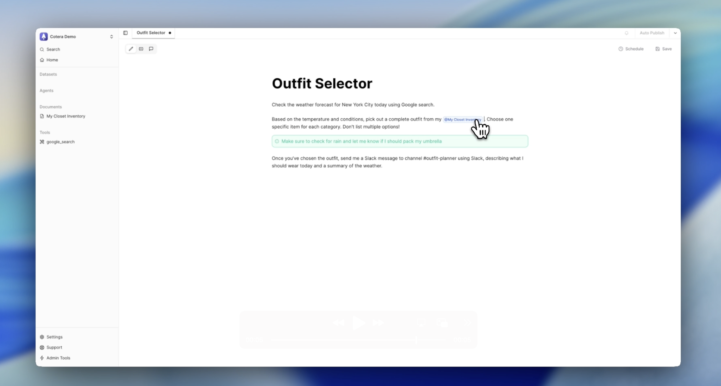 ## 概要 Coteraは会話ベースでエージェントを構築できるAIビルダー。コード不要で本番運用に適したエージェントをすばやく作成し、数千の統合と数百のプリビルトツール、細かな予算管理とリアルタ...