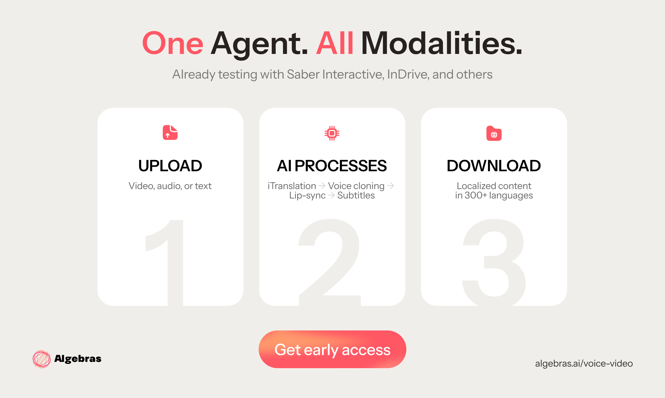 Algebras Video Localizationは、300言語に対応する人間味のあるAI吹替を実現するプラットフォームです。口の動き・リズム・感情・文化ニュアンスを保持し、言語とトーンを文...
