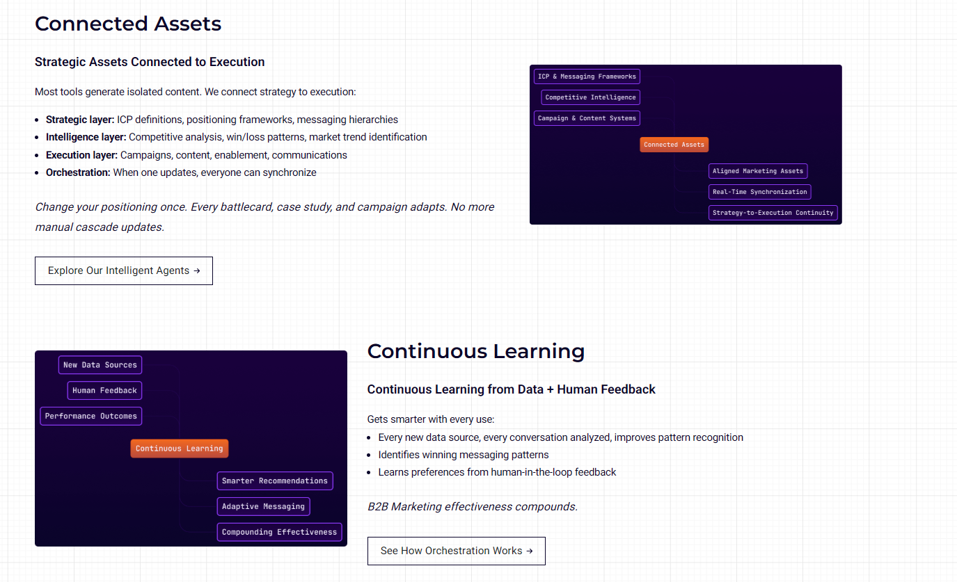 概要 - B2Bマーケティングのインテリジェンスとアクションを一体化するプラットフォーム。 - 意思決定、キャンペーン、資産をB2Bマーケティングコンテキストで推進。 - データ統合と可視化、実...