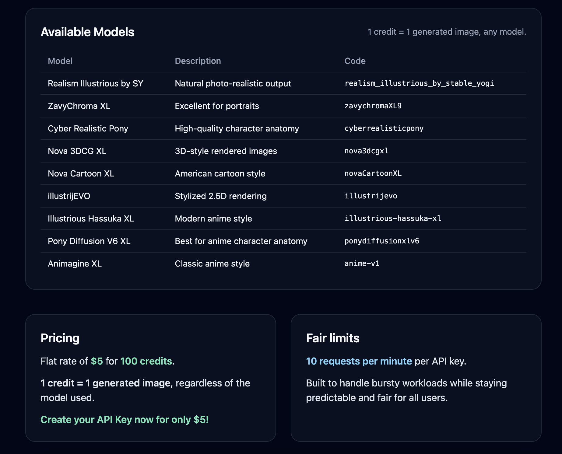 Imference is a high-performance, API providing access to multiple state-of-the-art image generati...