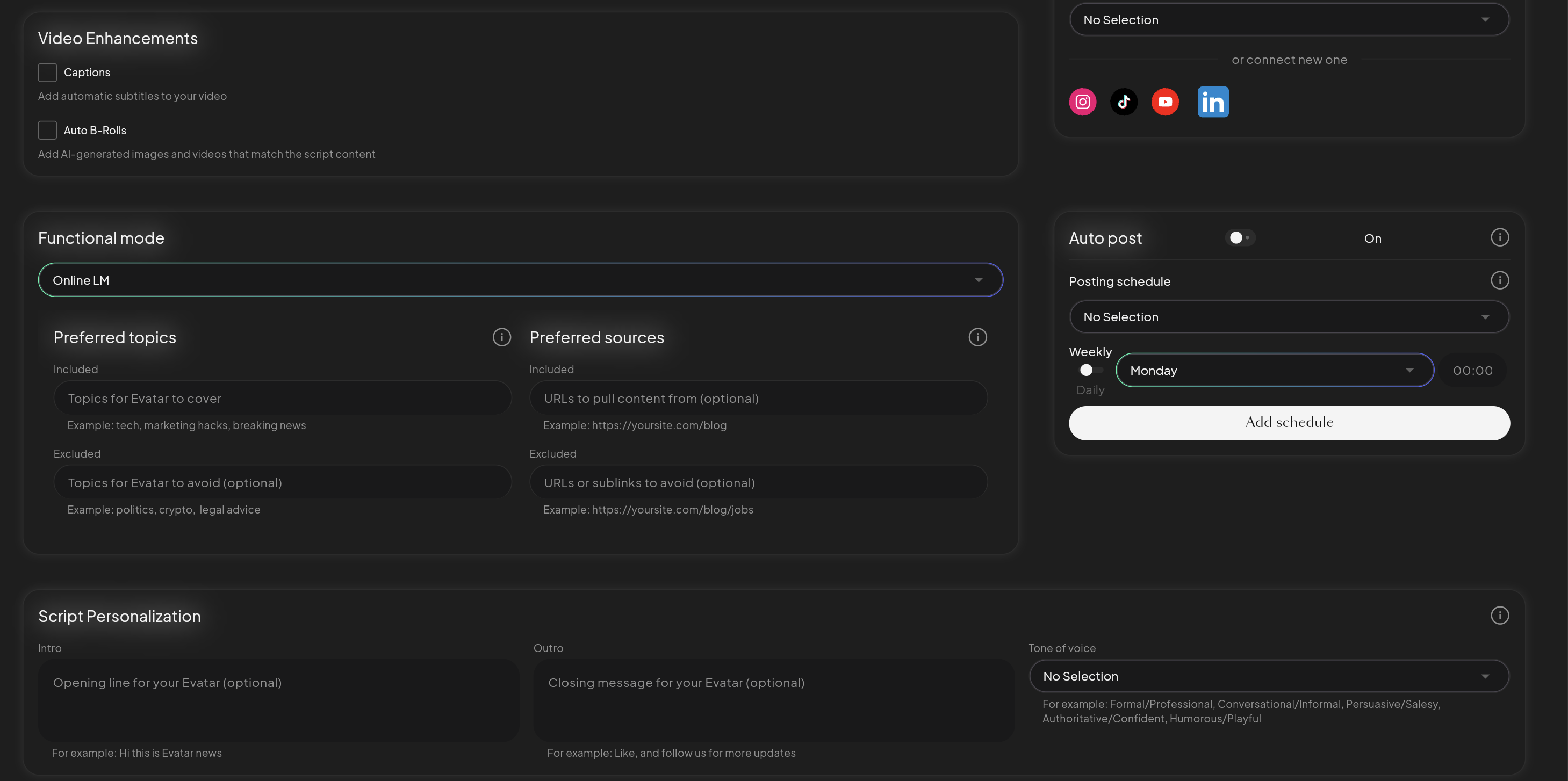 Evatar に新機能 Eva は、音声入力でアイデアを投稿用コンテンツ・ビジュアル・動画へ自動変換するコンテンツ作成アシスタントです。 主な特徴 - タスク別ソーシャルメディアエージェントを...