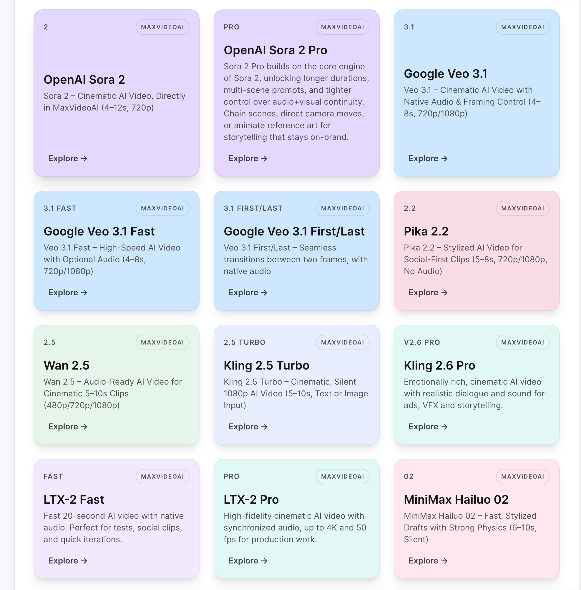 MaxVideoAIは、Sora 2・Veo 3・Pikaなど複数のAI動画エンジンを1つの作業空間で扱える統合プラットフォーム。4Kエクスポート・アップスケール・反復(x1–x4)、生成物を一...