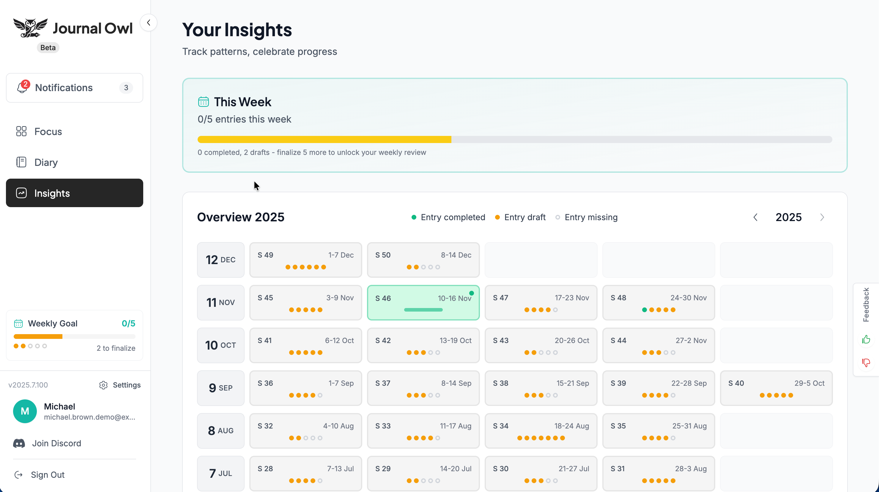 JournalOwlは、白紙のページを避けつつ、会話を通じて日記を深く振り返る無料のAI日記パートナーです。書いた内容に基づき追問を投げ、洞察を掘り下げる対話を提供します。AIが代筆するわけでは...