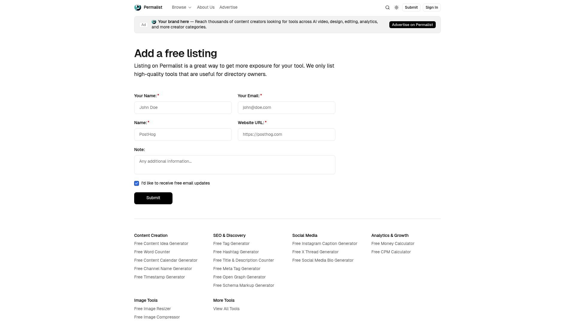 ## 概要 Permalistは、クリエイター向けの必須ツールをカテゴリ別に整理した厳選ディレクトリ。10のワークフローカテゴリ(CREATE: AI動画、AI画像、動画編集、デザイン、ライティ...