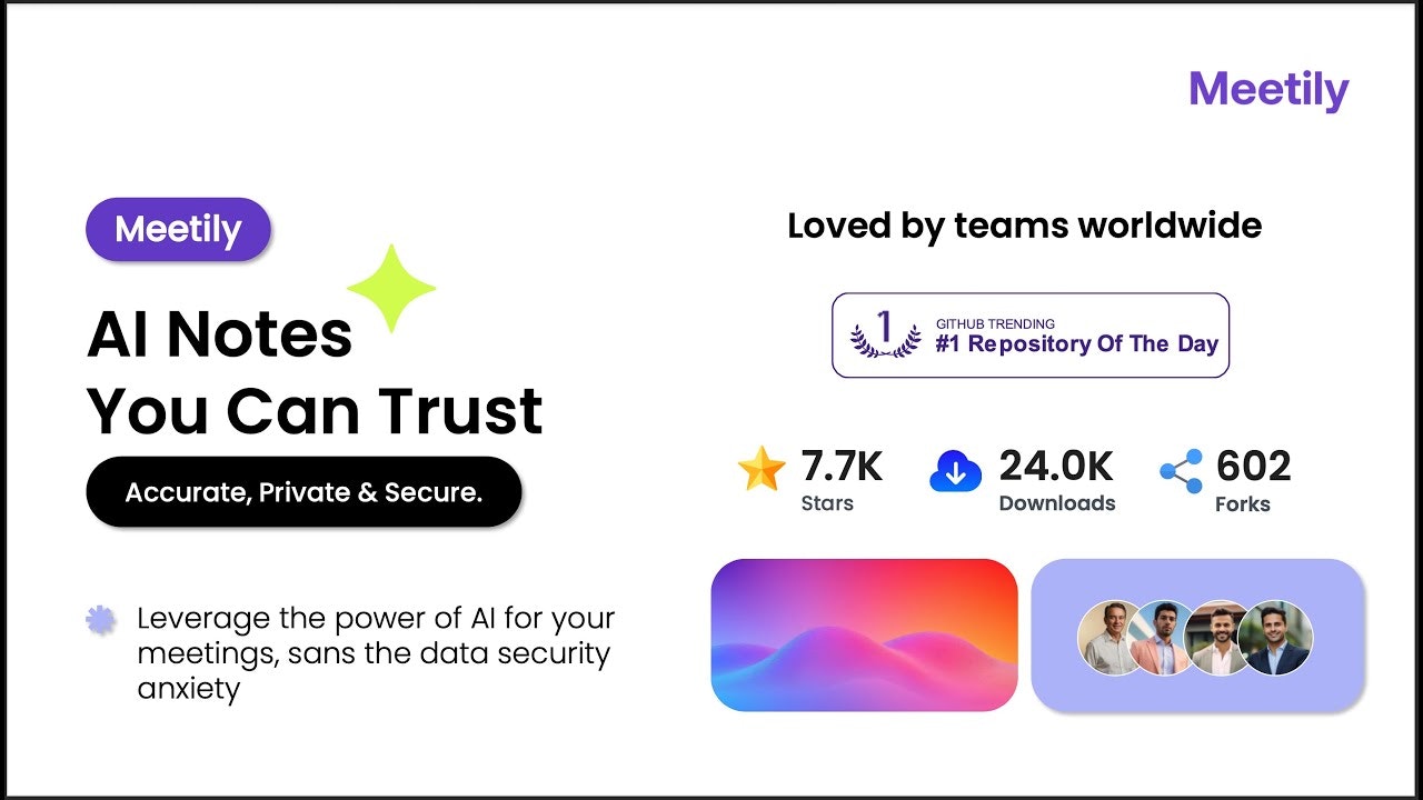 Meetilyは個人向けの無料プラットフォームで、100%ローカル処理により会議データを端末内にとどめ、クラウド依存を排しています。リアルタイムの文字起こしとAI要約を提供し、プライバシーを第一...