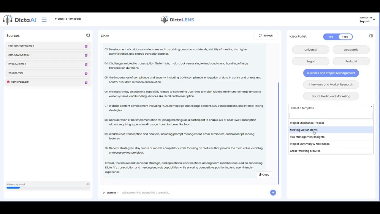 DictaAIは、AI搭載の文字起こしと会話インテリジェンスを組み合わせたプラットフォーム。音声・映像を高速で正確な文字起こしに変換し、スマートサマリー・トピック検出・DictaLens分析を通...