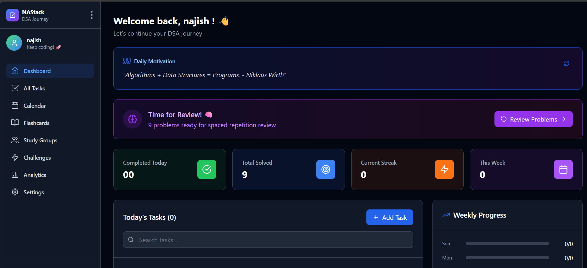 DSA学習の継続を支える構造化トラッキングとストリーク動機付けを核とした MVP。resources よりも「構造と進捗の可視化」が課題と認識した学生を対象に、学習プラットフォームを置換せず補完...