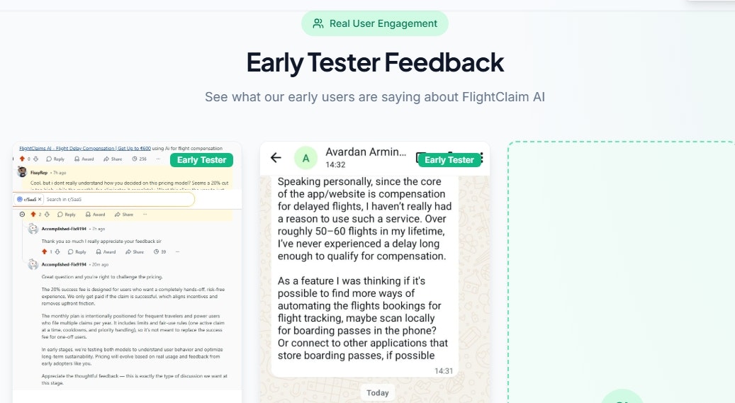 FlightClaim AI は、フライトの遅延や中断を事前に捉えて旅を妨げないようサポートするスマートなフライト追跡 SaaS です。フライトを追加するか搭乗券をスキャンするだけで、旅程をリア...