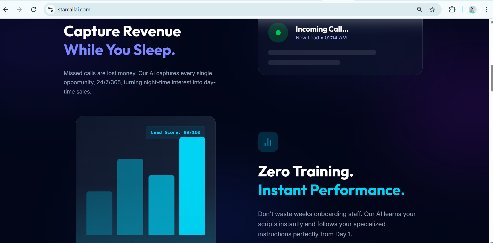 概要: Starcallaiは事業主向けのAI受付アシスタント。24時間365日、電話対応を自動化し、企業データをベースにカスタムトレーニングされている。人を雇うより約80%安価で、眠ることもな...