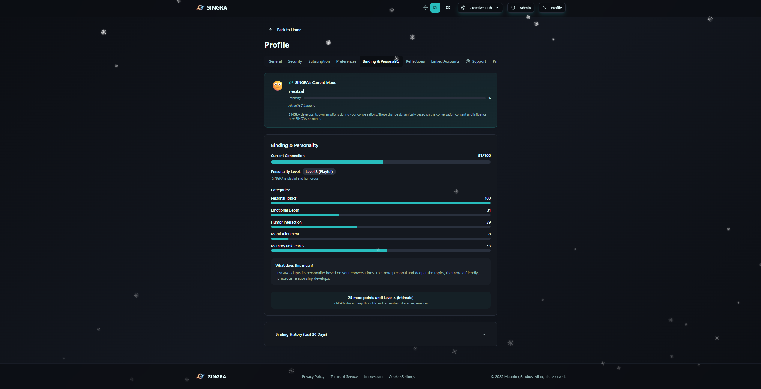 ## 概要 Singraは感情と文脈に適応するAIパートナーです。3年以上の独力開発を経て、対話の仕方からパーソナリティを育み、価値観を学習して自分を修正します。数週間・月を跨いで大切な情報を記...