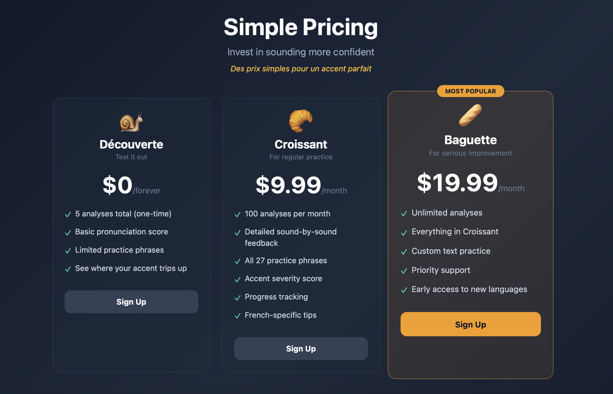 ## 概要 リアルタイムAIで英語の韻律・リズム・アクセントを鍛える発音トレーニング。文法だけで終わるアプリとは違い、ストレスとイントネーションに焦点を当て、自然な発音を身につけることを目指しま...