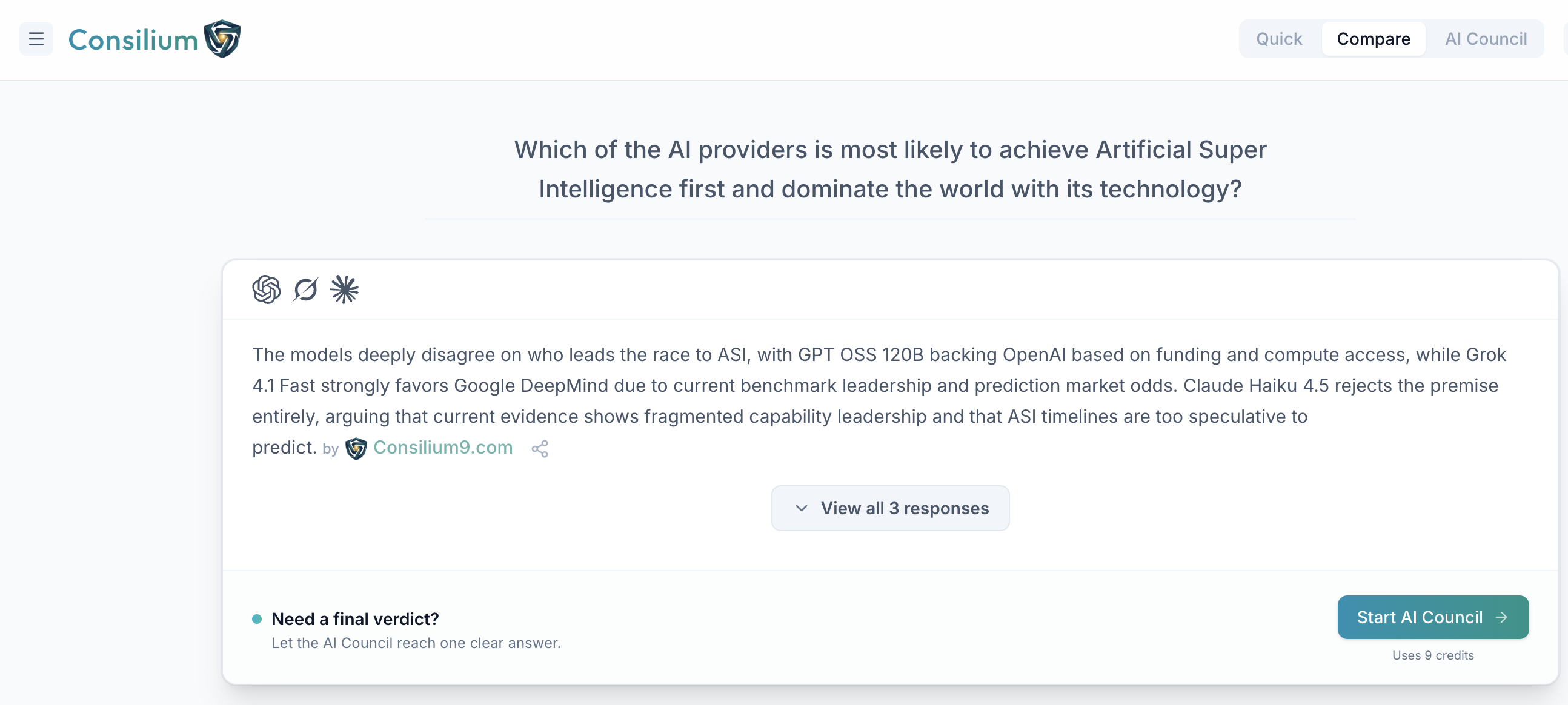 ## 概要 複数モデルの協働で回答の信頼性を高めるAIプラットフォーム。GPT-5.2/ Gemini 3 Pro など17モデルから選択し、評議会モードでラウンドごとに検証済みの結論を導きます...