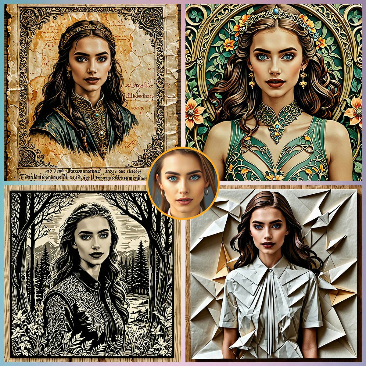 ## 概要 1枚の顔写真から、油絵・水彩・アニメ・漫画風、プロのヘッドショット、ヴィンテージ風ポートレート、ブライダルルック、モノクロ、旅写真など多彩なスタイルを生成します。高度な大規模AIモデ...