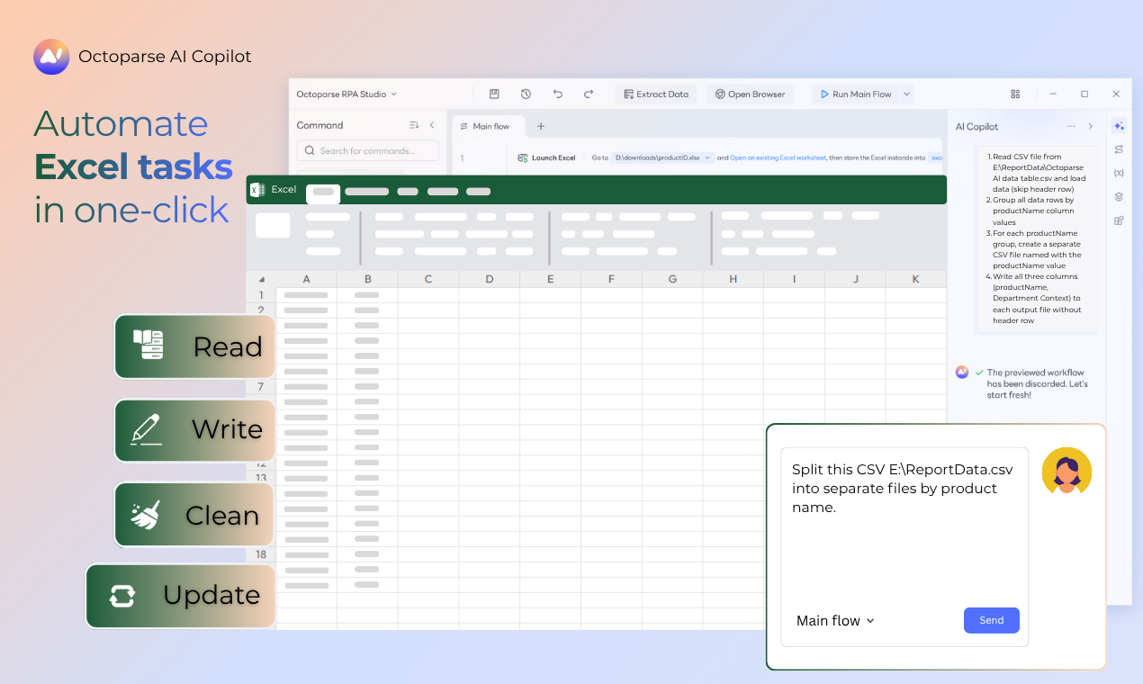 ## 概要 - ウェブとデスクトップの自動化をノーコードで実現するRPAボット作成ツール - AI Copilotが平易な言葉で指示を受け、数分で実行可能なワークフローを生成 - ドラッグ・コー...
