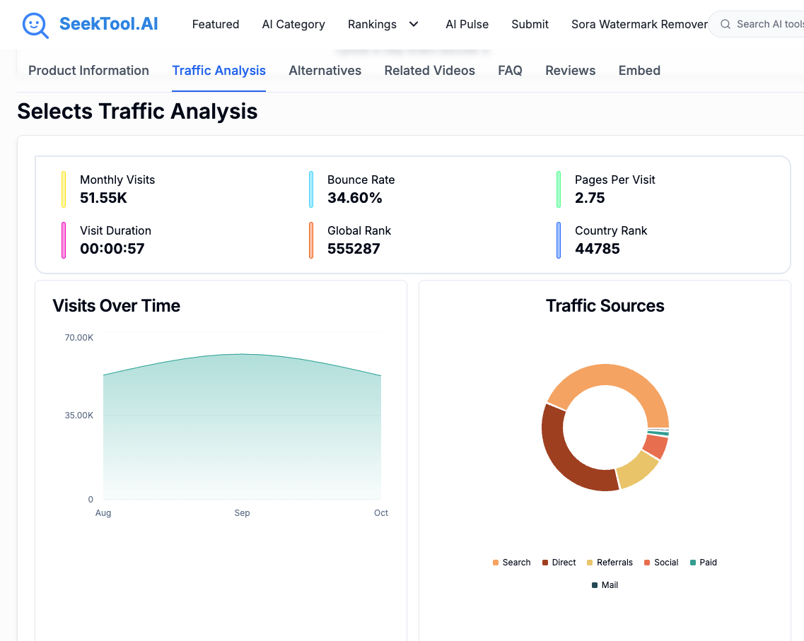 SeekTool.aiは、実力のあるAIツールを見つけるための総合的な発見プラットフォームです。6000件超の高品質ツールをデータ駆動で厳選し、月間訪問数20K以上の実績を持つ製品に焦点を当てま...