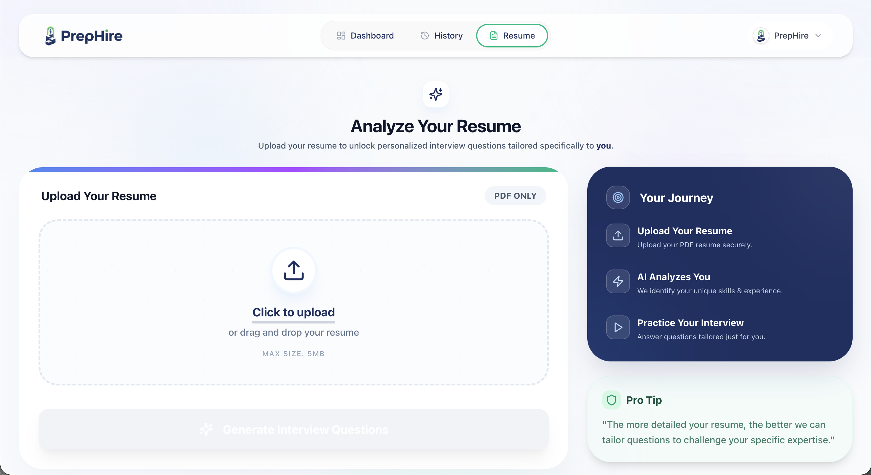 ## プロダクト概要 PrepHireはAIを活用した面接準備プラットフォーム。実際の面接シナリオを練習し、即時のAIフィードバックと弱点分析を提供。分野別の質問を生成し、回答をリアルタイムで評...