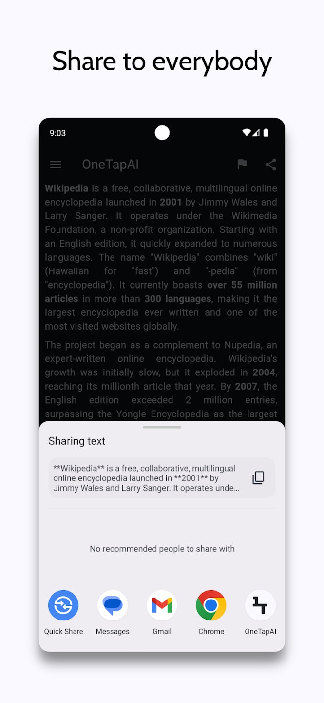 タップ一回でテキストやURLを自分の言語で要約