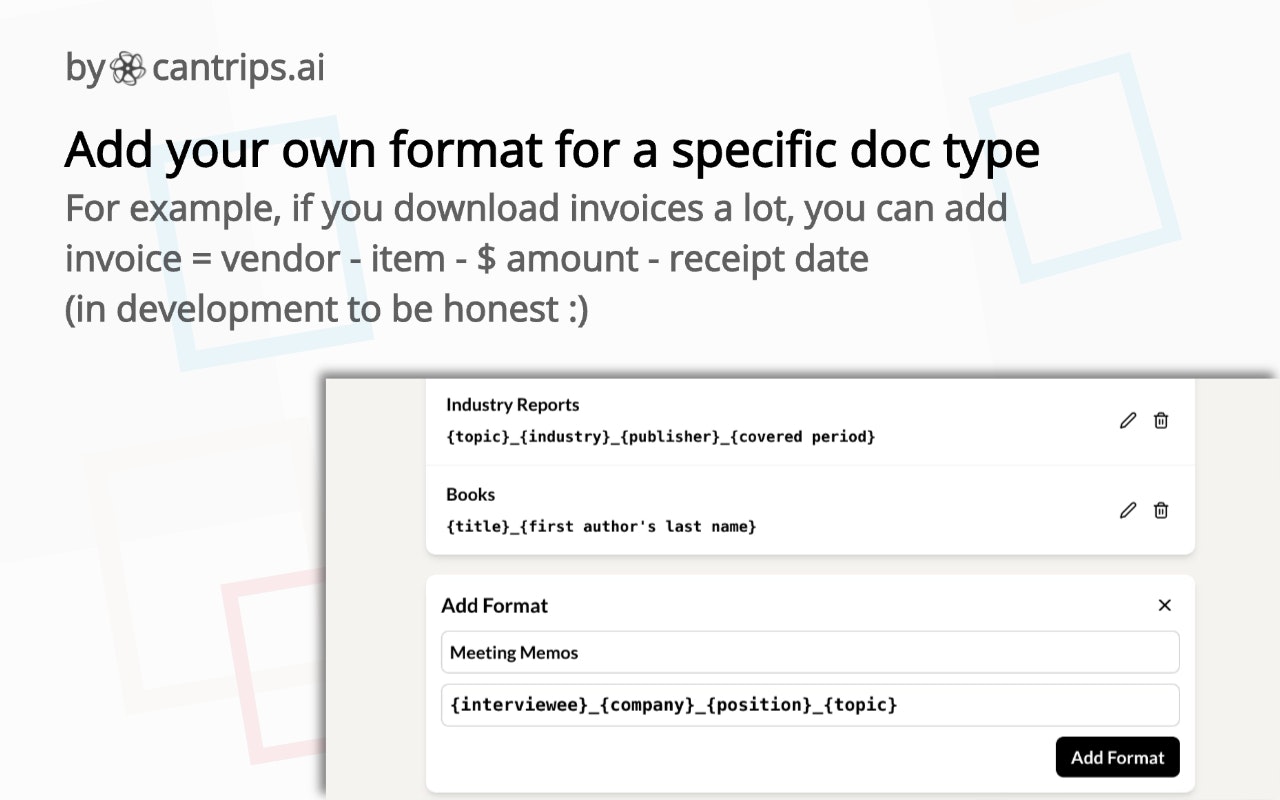 ## Cantrips.ai について Cantrips.aiは、ダウンロードファイルの名前を自動で整理し、意味のある名前に変換するサービスです。特に、研究や作業中に散乱するファイル名に困ってい...