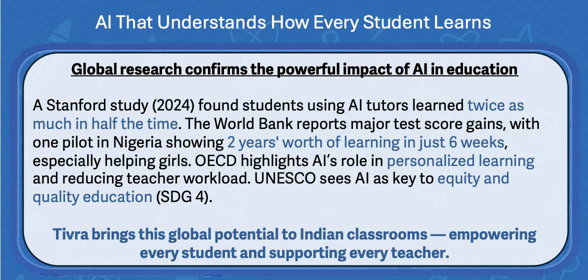 ## Tivraについて Tivraは、学生のために設計されたAI教師です。 ## 特徴 - **迅速な説明**:瞬時に会話形式での説明を提供し、従来の検索で20のリンクを調べる必要がありませ...