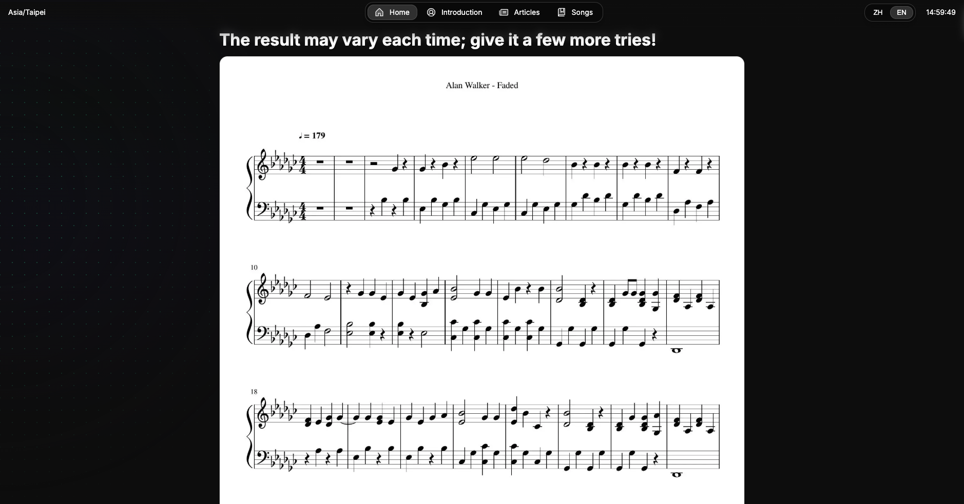 ##概要 原曲から始め、ハーモニー構造・コード・リズムのアイデアをAIが抽出。ピアノ譜がない曲にも、演奏用の出発点を提供します。リンクを共有するだけで譜面化を開始でき、分析・準備の時間を短縮。ミ...