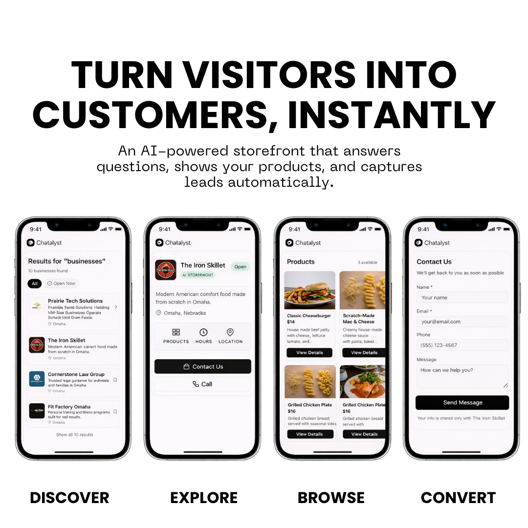 AI時代の顧客発見を変える、AI搭載の自社ストアフロントの提供。92%の企業がAI検索で可視化されず、26億件の日次AI検索が発生。顧客はAIへ質問する時代。Chatalyst は顧客発見・質問...