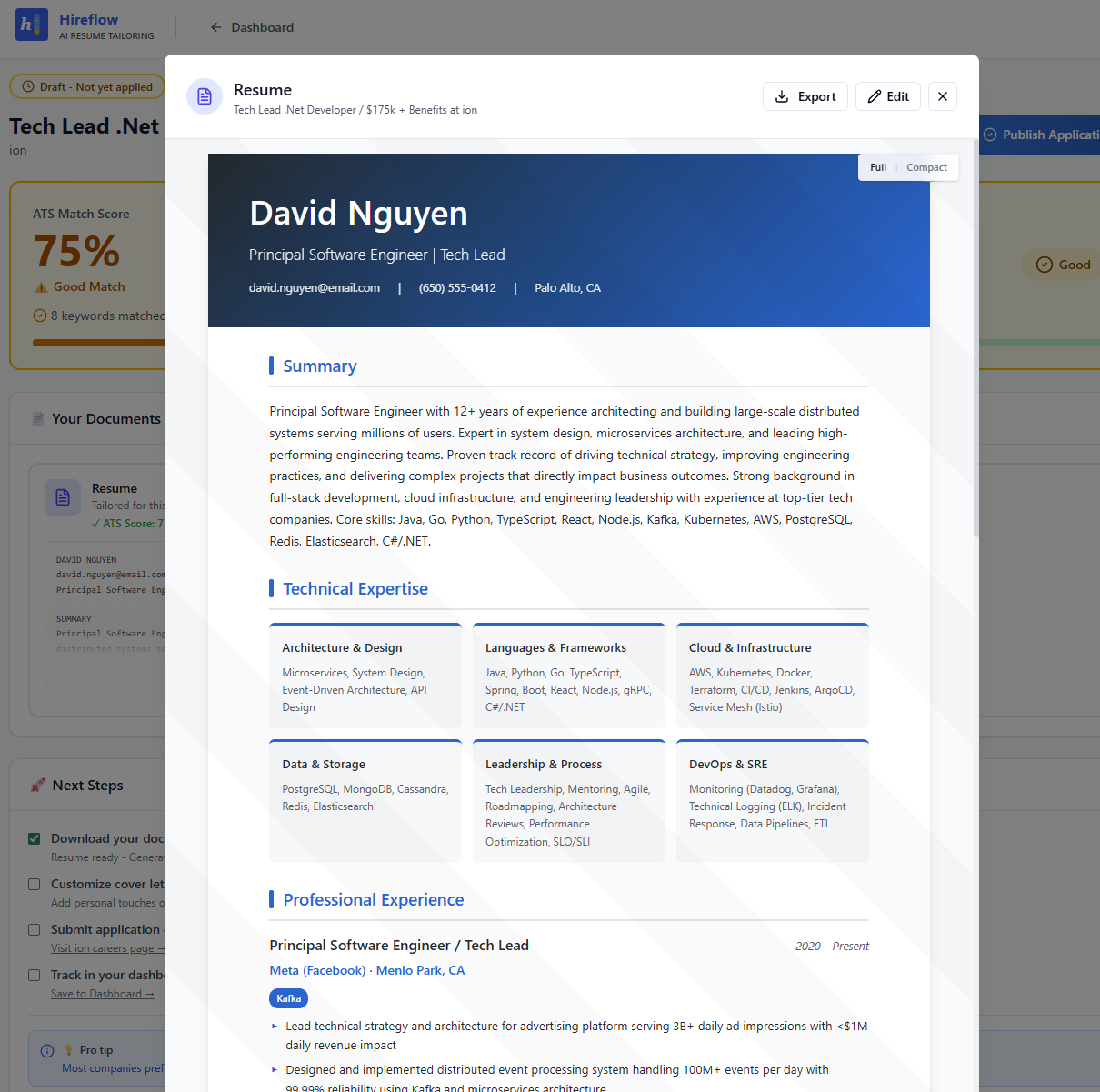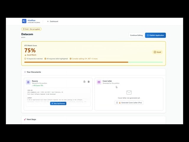 AIを活用して、求人ごとに履歴書を迅速に最適化する応募サポート。AT S対応の履歴書とカバーレターを自動作成し、応募の成功率を高める。初期はキーワードマッチから始めたが、意味理解とATSスコアで...