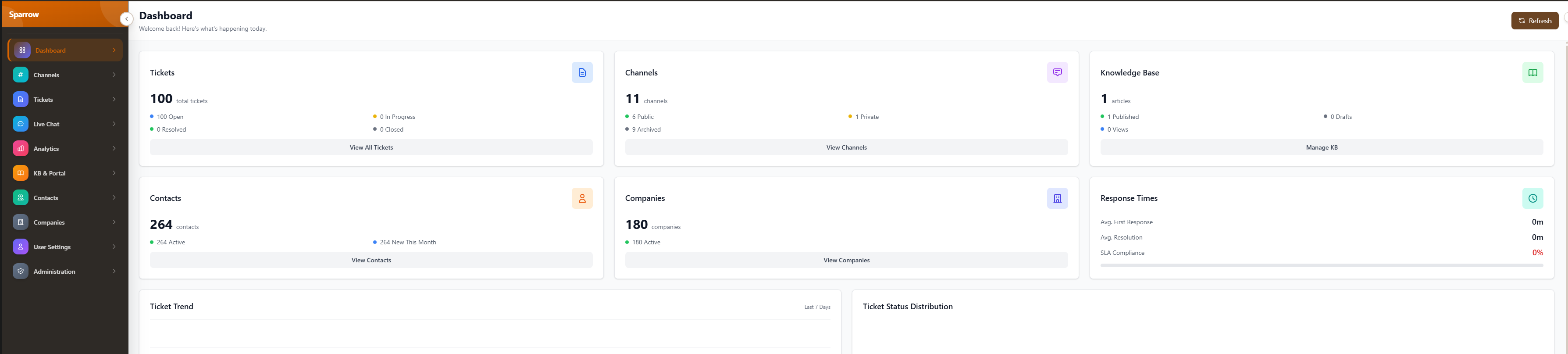 ## 概要 Sparrowは、リアルタイムの会話、AI支援のルーティング、強力な自動化を備えた次世代のヘルプデスクです。直感的で美しいインターフェースのもと、知的なチケット分類、内蔵分析、深い統...