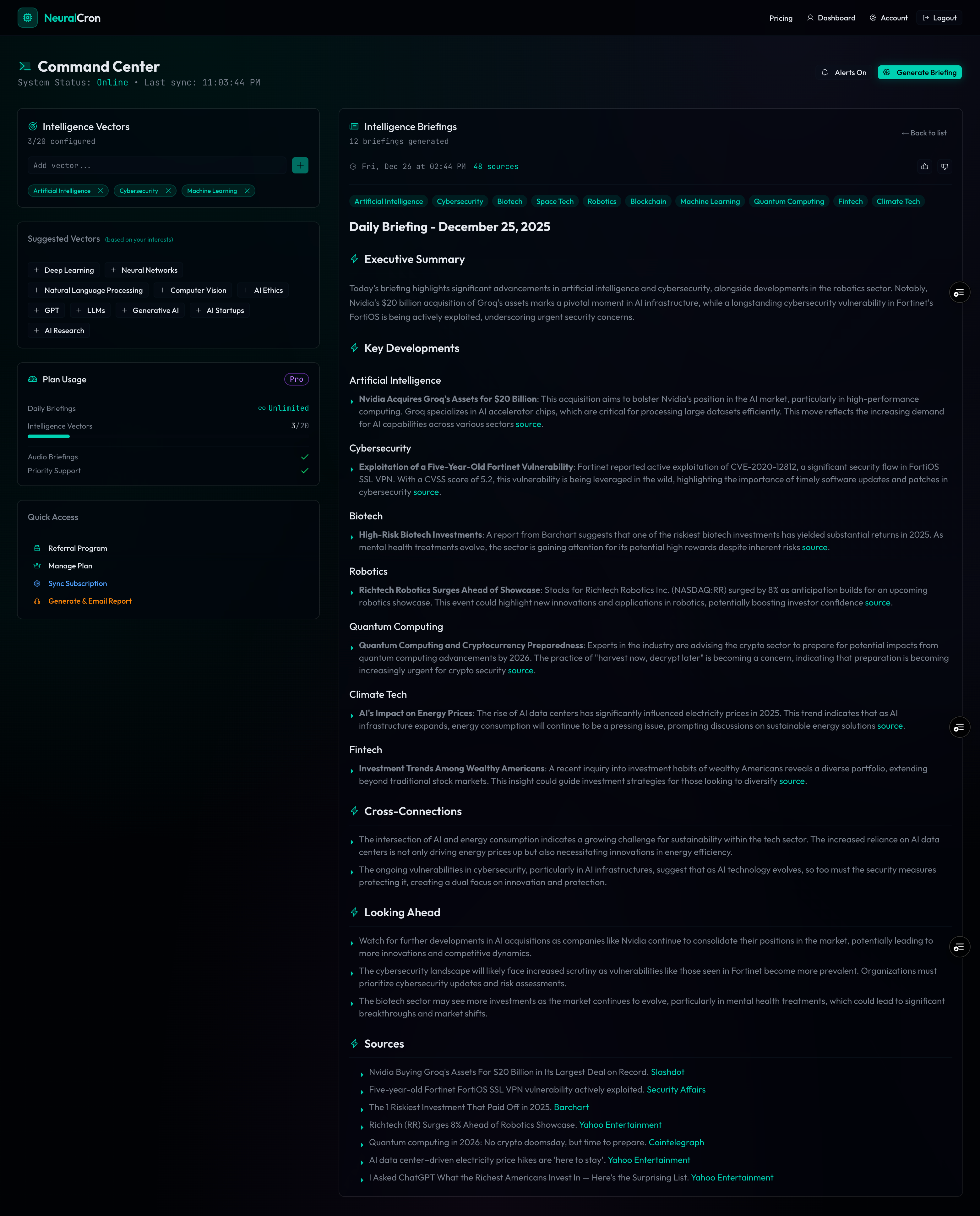 ## 概要 ニュースを実践的な情報へ要約する、あなた専用のAIブリーフィング。毎朝、関心のあるトピックを継続監視し、洞察を統合してすぐ使える形で受信箱に届けます。 ## 特徴 - ノイズを排除...