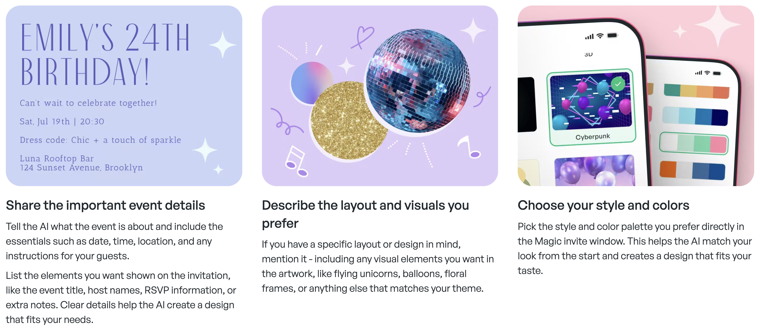 ## 概要 - アイデア起点で美しい招待状を作るAIツール。テンプレート選びに時間をかけず、イベントの説明だけでデザインが生成されます。- 生成後はすぐに編集・ダウンロード・RSVP共有が可能。...