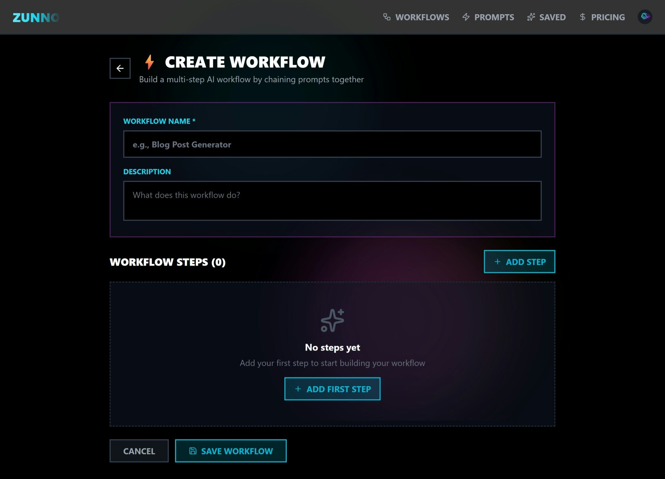 ## 製品概要 Zunno は複数の AI プロンプトを1つのワークフローに連携させ、文字数制限を設定し、ステップをつなげてワンクリックで全処理を実行できるツールです。 ## 主な特徴 - 複...
