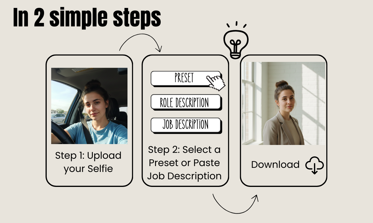 自撮りを数分でスタジオ級のプロフェッショナルヘッドショットに変換します。